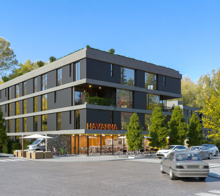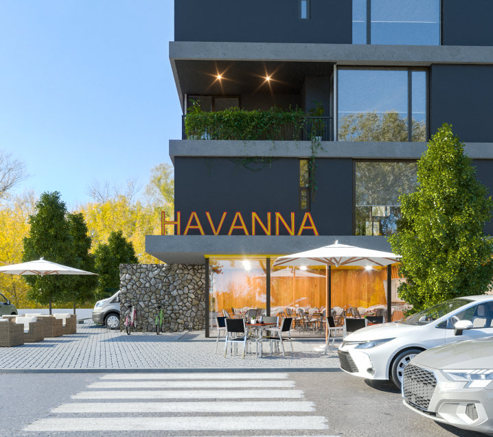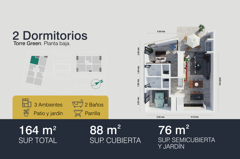 En la esquina de la planta baja de la Torre Green podrás acceder a una confitería de escala acorde al entorno, tanto por la vereda como desde dentro del complejo.